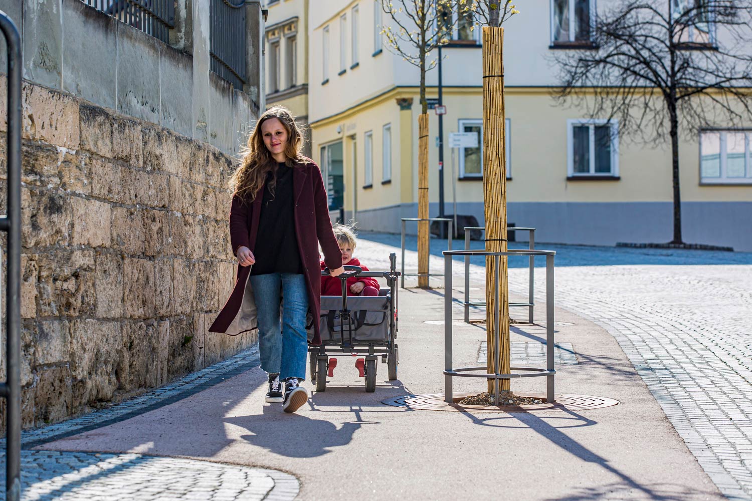 Eine Altstadt für alle: Am neugestalteten Grabenmühlplatz in Bad Waldsee ist ein vernetzendes „Mobilitätsband“ aus hochwertigem bam COLOUR entstanden. Im Gegensatz zu herkömmlichen Bodenbelägen wie Kopfsteinpflastern oder Schotterwegen ist dieses Material auch für Kinder und Personen mit Handicap sehr gut begeh- oder befahrbar. Die rötlich-beige colorierte Deckschicht erhielt nach dem Einbau einen speziellen Grobschliff. Dadurch ergibt sich eine griffige und rutschhemmende Oberfläche. Außerdem werden die einzigartige Mineralstruktur und Farbgebung optimal betont.