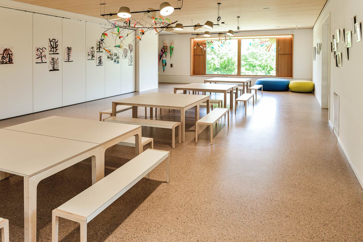 Farbenfroh, robust und fußwarm: Der neue, Cappuccino-farbene Bodenbelag dieses fortschrittlichen Kindergartens sieht nicht nur richtig cool aus, sondern erfüllt auch alle weiteren wichtigen Kriterien, wie hohe Widerstandsfähigkeit, hervorragende Trittschalldämmung und – dank der niedrigen Wärmeleitzahl – angenehmes Temperaturempfinden. Dabei wurden neben dem großen Eingangsbereich auch sämtliche Flure und angeschlossene Räume wie Küche, Essbereich oder Toiletten mit dem fugenlosen Nutzestrich aus bam COLOUR TERRAZZO gestaltet.